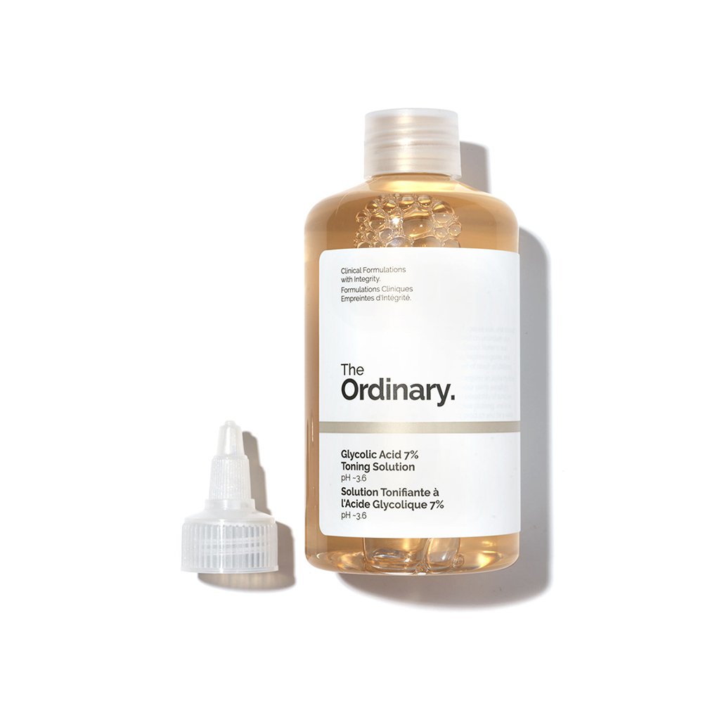 The Ordinary Glycolic 7% Toning Solution is free from silicone, alcohol and oil, and is also vegan and cruelty-free. It is not suitable for use on sensitive or compromised skin.